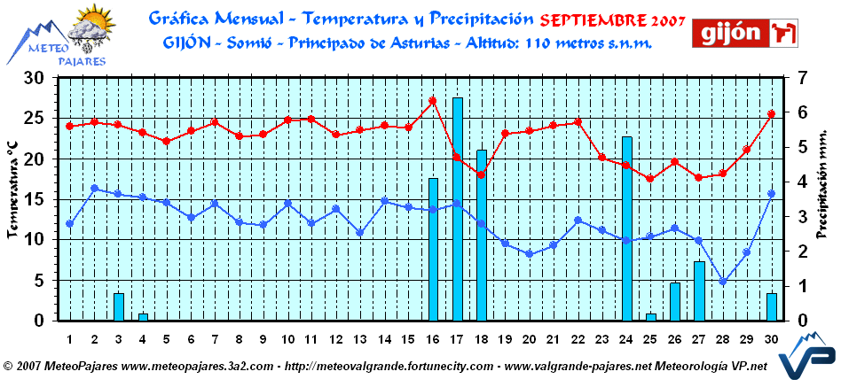 Temperatura máxima: 27,1ºC - 16 de Septiembre