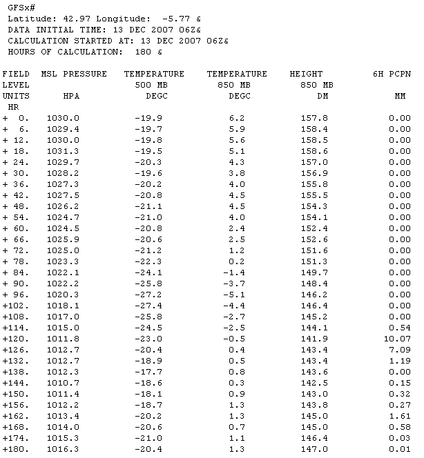Bueno la salida de las 00Z nos presenta más de lo mismo, mucho frío, se prolonga durante bastante tiempo pero sigue siendo muy seco, solo al final cuando la temperatura a 850hpa ronda los 0ºC llega algo de precipitación...