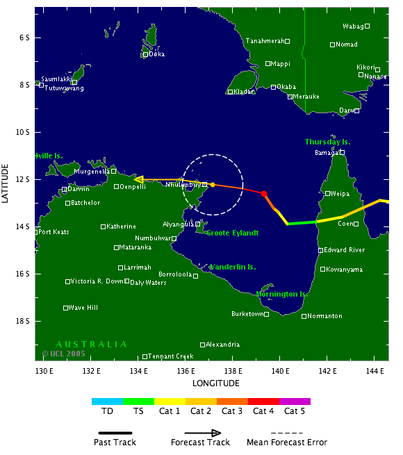 . Centre located near...... 12.3 degrees South 139.0 degrees East