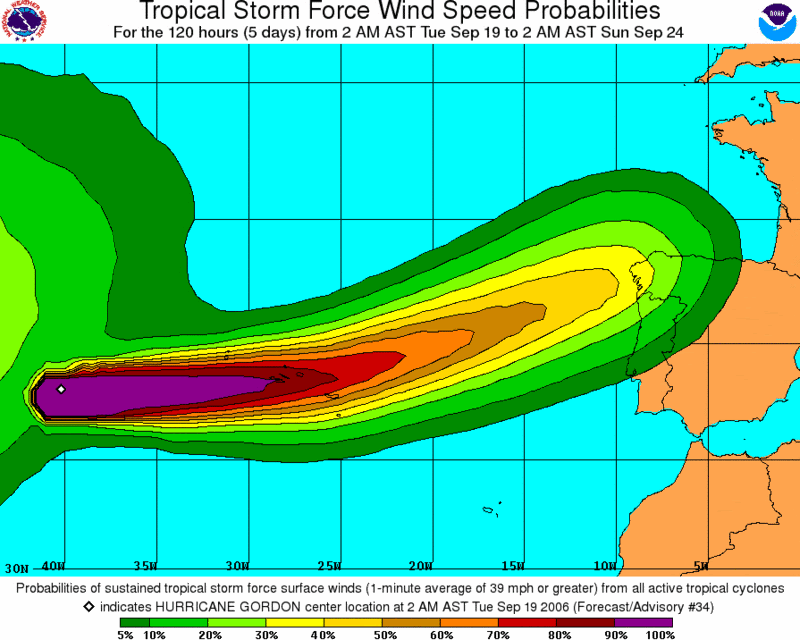 Bueno, las cosas siguen bastante parecidas, solo que tenemos a Gordon mucho más cerca de Azores con categoría 1.